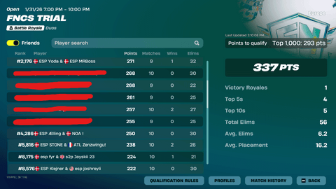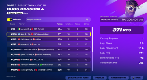 Se de seneste placeringer i duo
