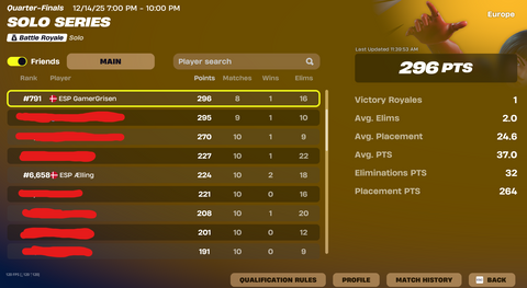 Se de seneste placeringer i solo
